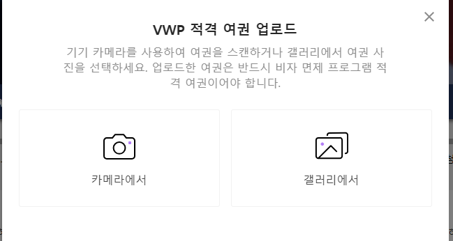 그다음 넘어가면 여권을 업로드 하게 되어있는데 사진을 찍거나 디바이스에 저장된 사진을 첨부 하시면됩니다.
