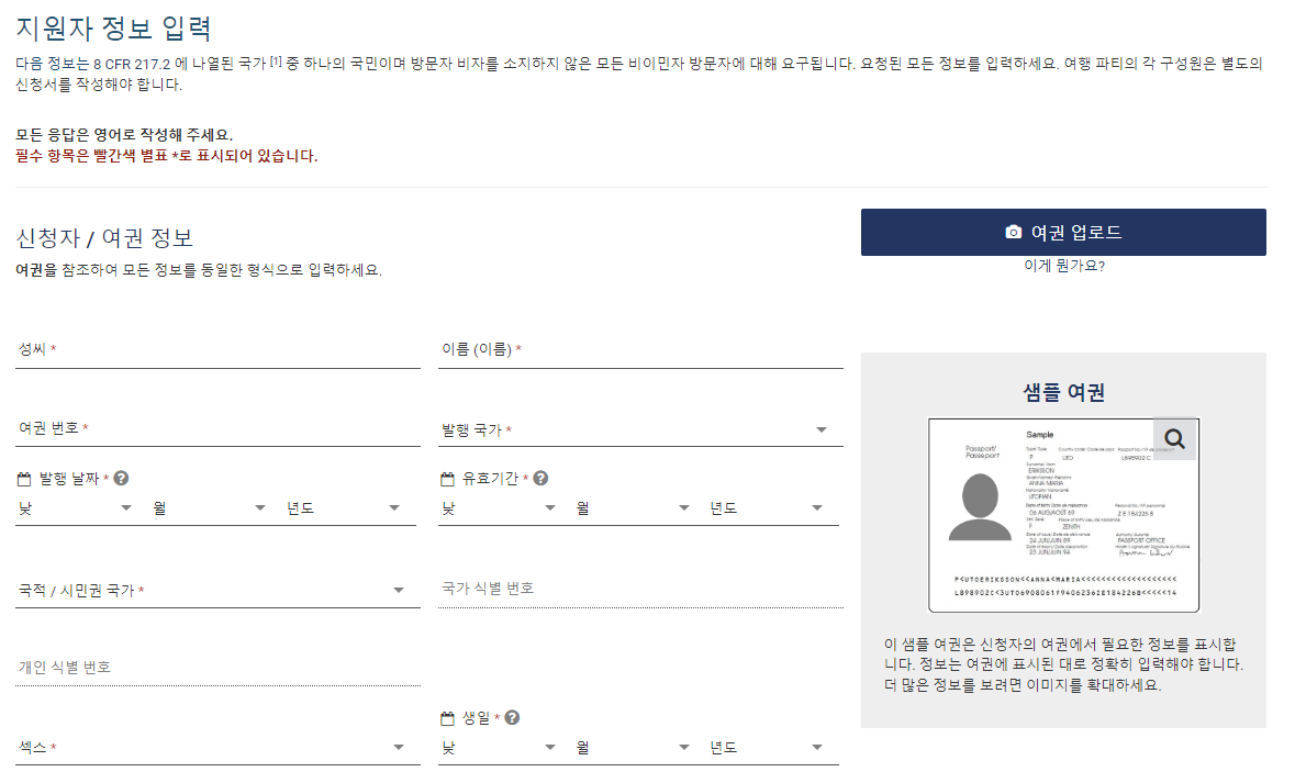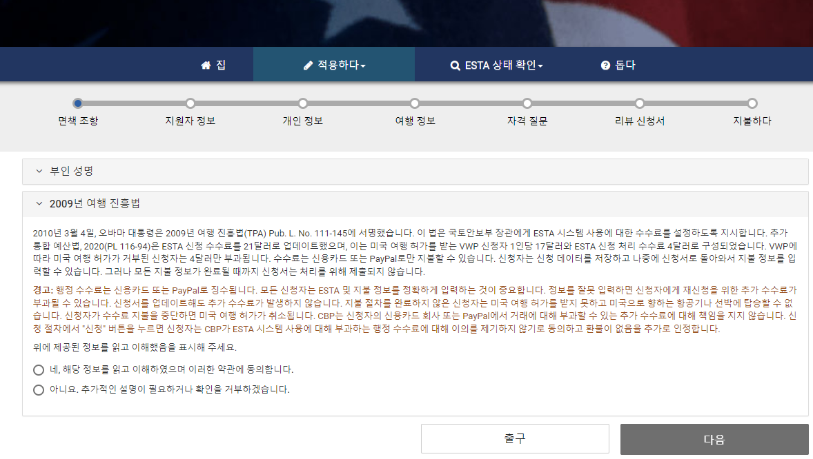 전자 여행 허가증으로 미국에 무비자 상태로 입국하는 외국인들의 개인정보 사전 등록 시스템