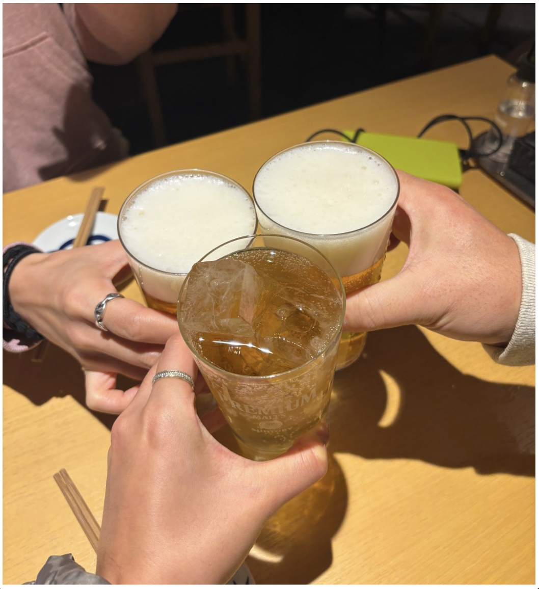 너무 추웠어서 따듯한 이자카야에 들어와서 셋이 하이볼이랑 맥주 먹는데 그렇게 꿀맛일 수가 없어요 ㅋㅋ