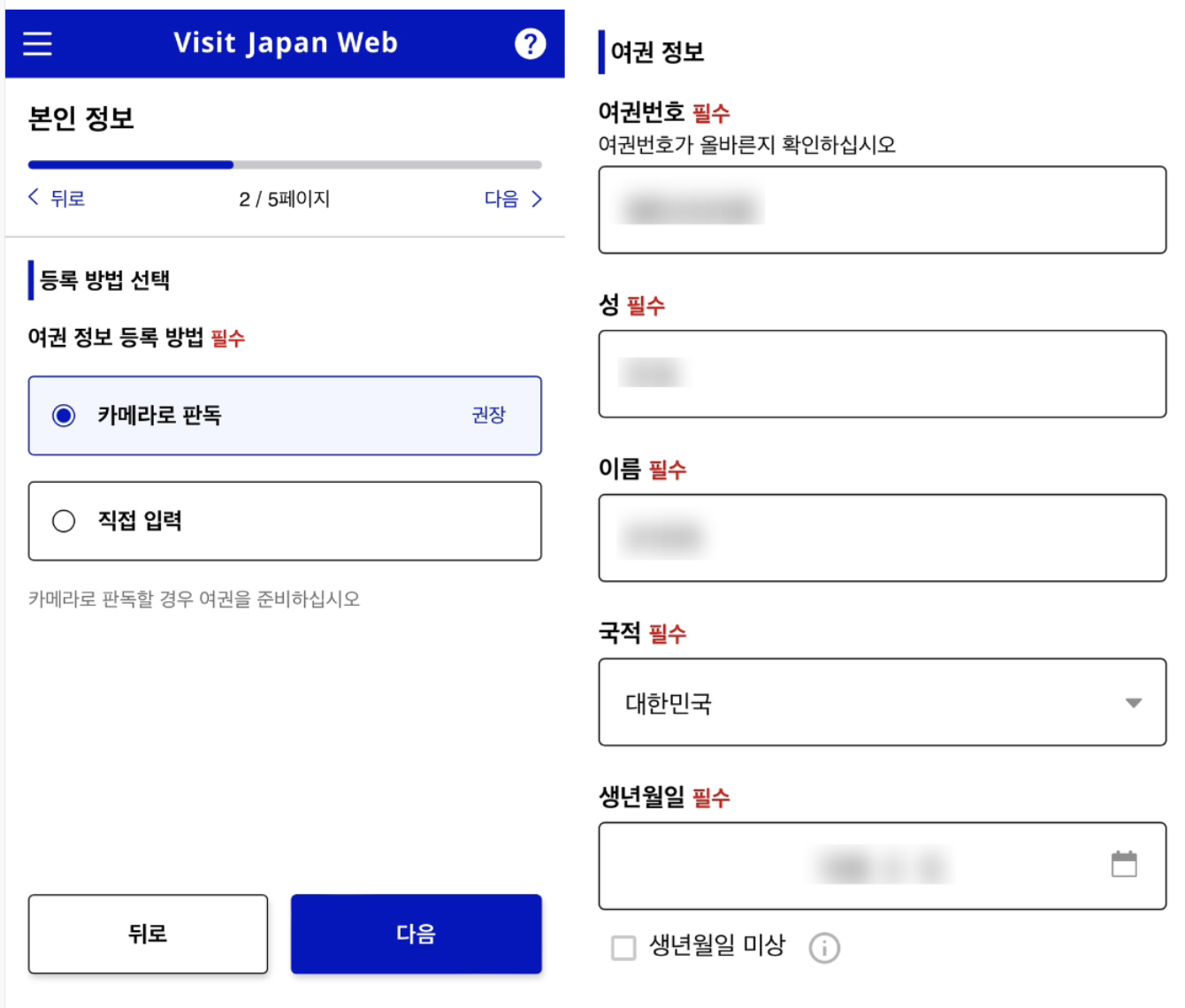 여권번호등 개인 정보를 작성해 주시면 됩니다!
