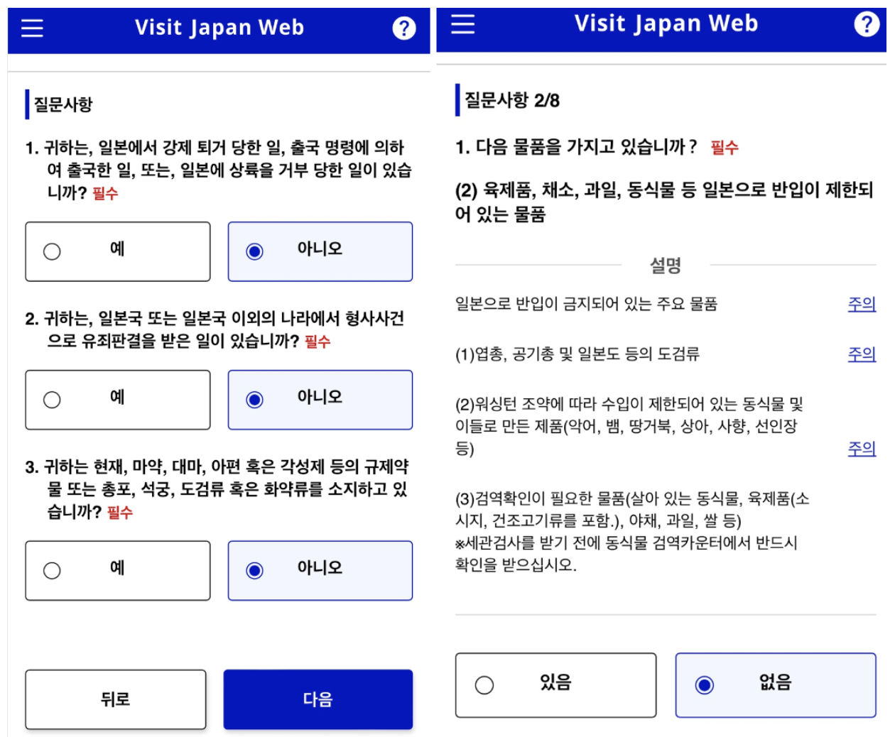 [일본] 입국심사 비지트재팬 작성법 (24년1월25일 변경기준)